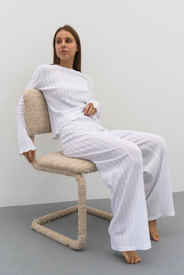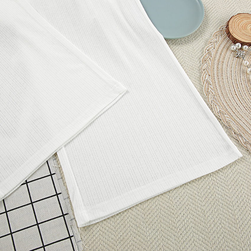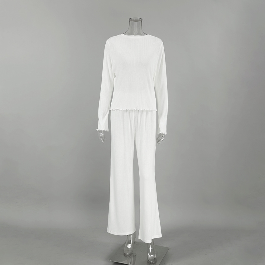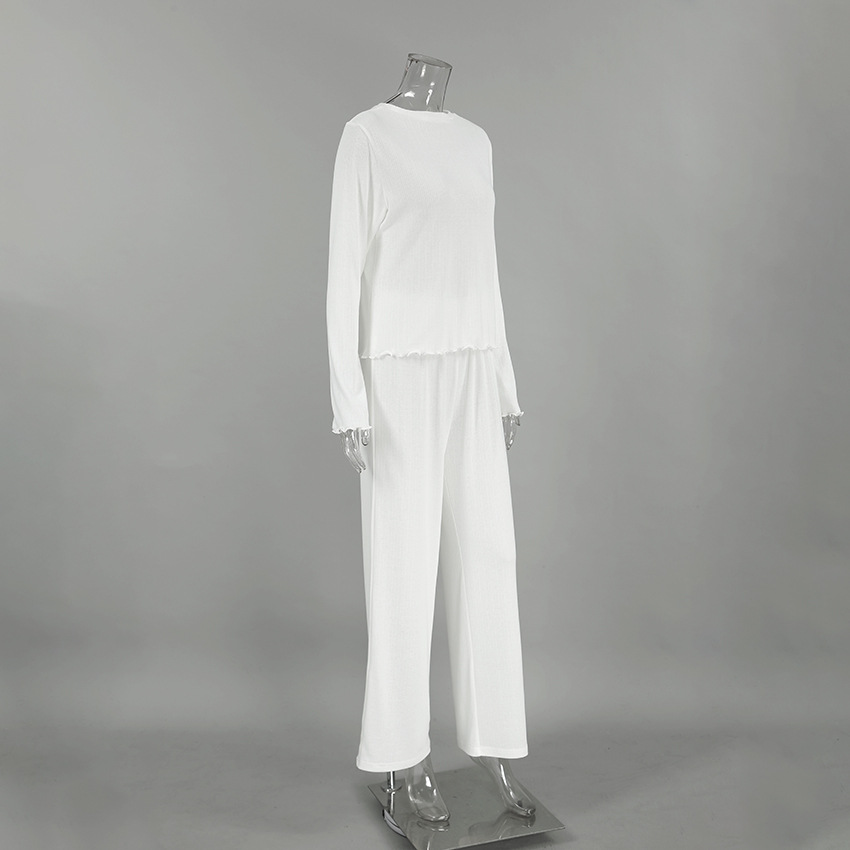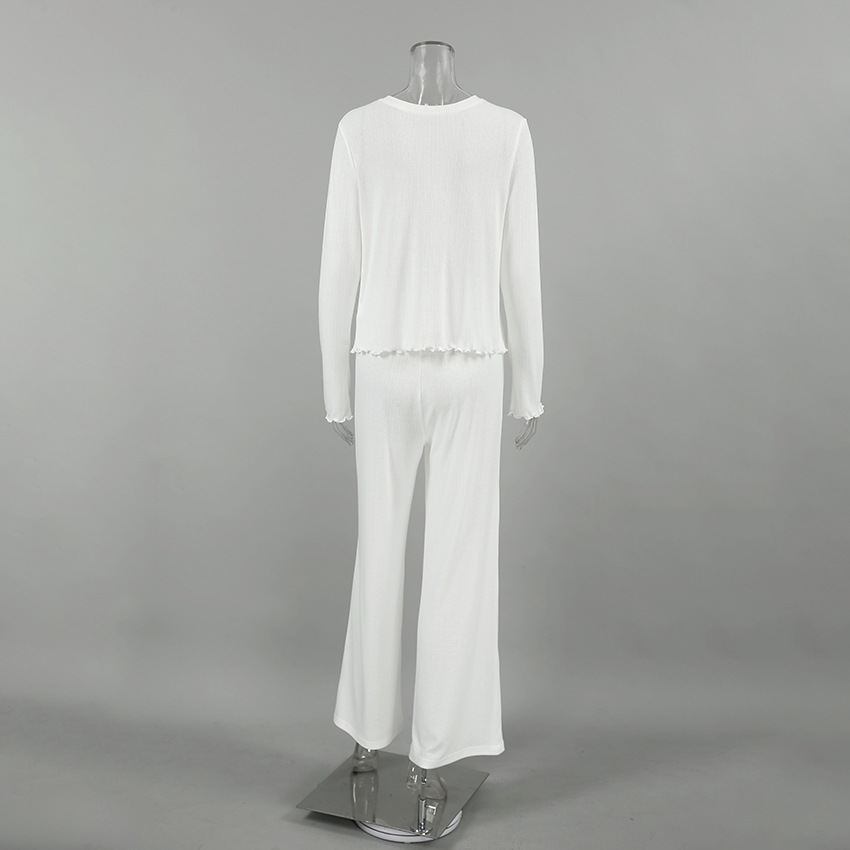 Spring Summer Sexy Elegant Vertical Pattern Long Sleeved Trousers Knitted Soft Comfortable Pajamas Two Piece Homewear Women