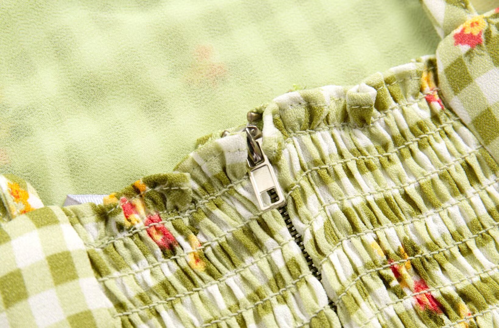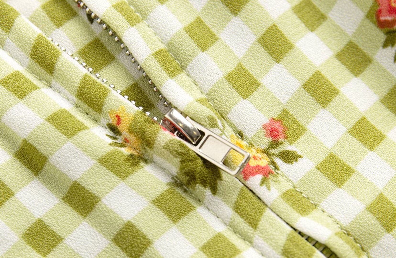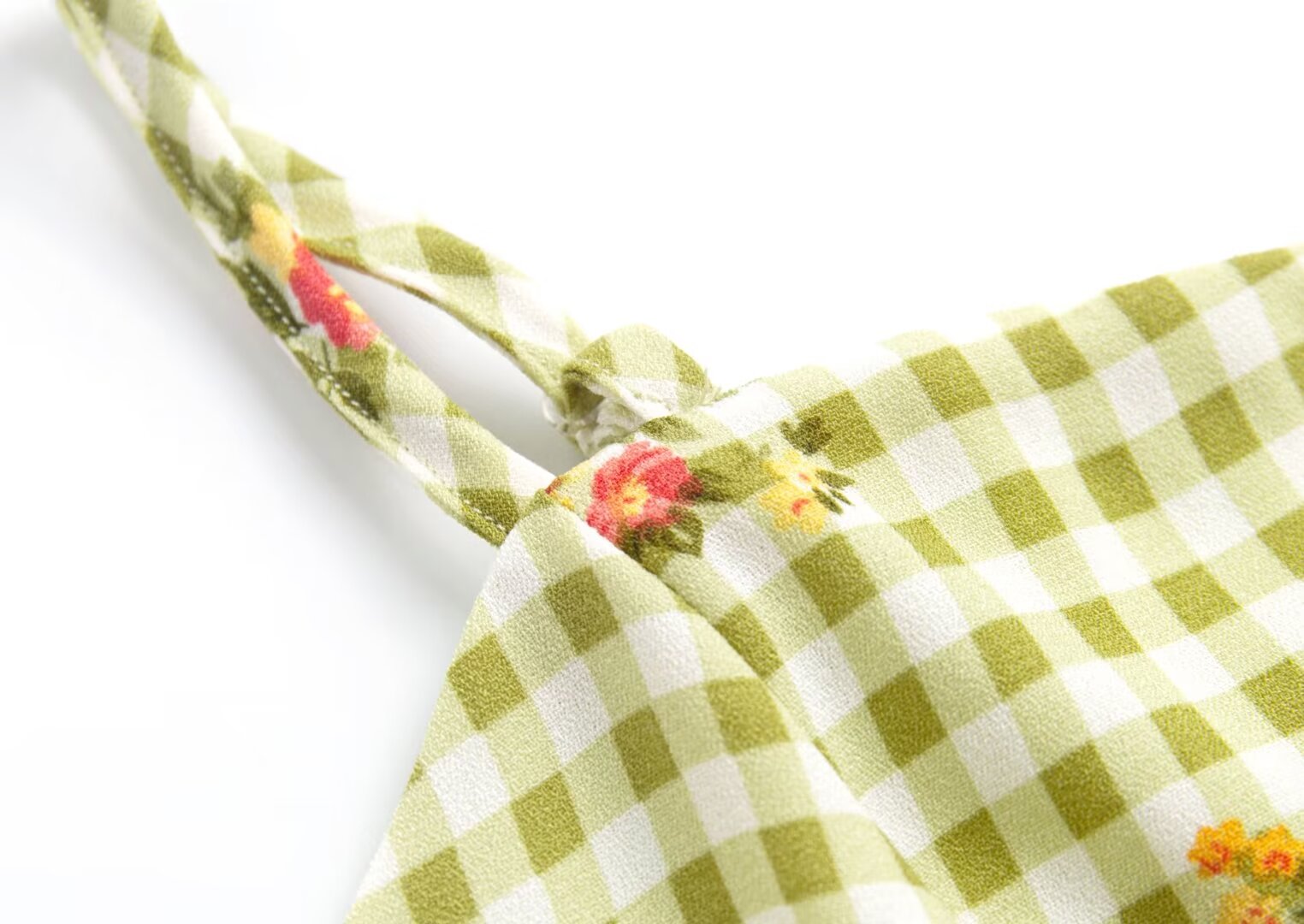 Summer Plaid Floral Print High Waist Slim Strap Dress Short Dress