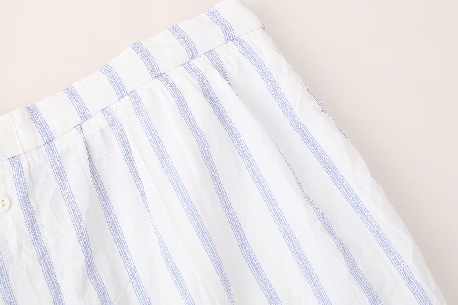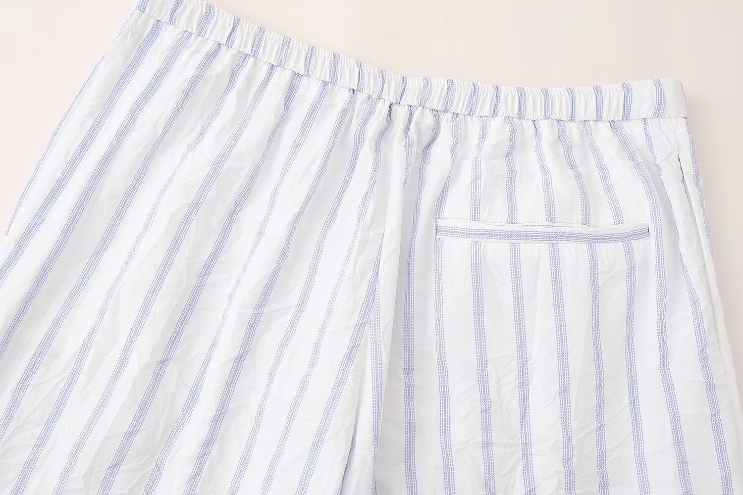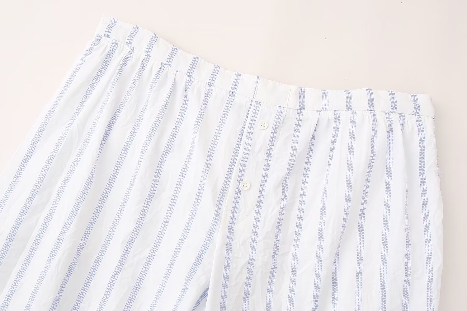 Spring Summer Sexy Elegant Vertical Pattern Long Sleeved Trousers Knitted Soft Comfortable Pajamas Two Piece Homewear Women